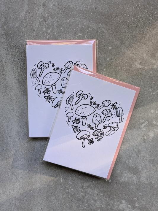 Mushroom Heart Letterpress Coloring Cards – Set of 4 | Mini A1 DIY Note Cards on Cotton Paper