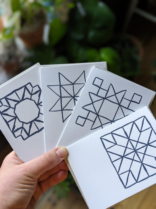 Quilt Letterpress Coloring Cards – Set of 4 | A1 DIY Note Cards on Cotton Paper