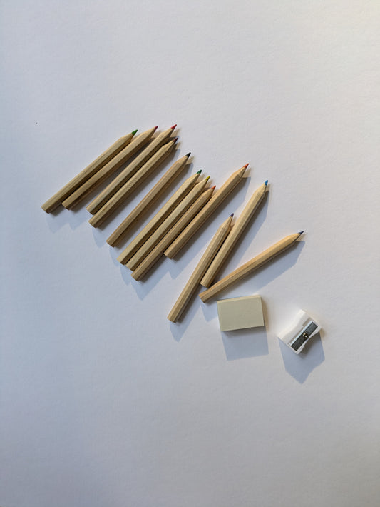 Mini Coloring Pencils: Set of 12 + Eraser and Sharpener