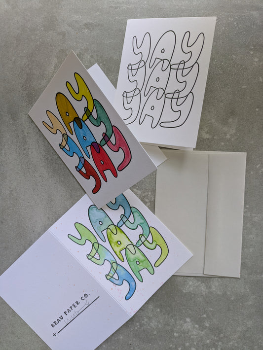 YAY YAY YAY Letterpress Coloring Cards – Set of 4 | A1 DIY Note Cards on Cotton Paper (Copy)