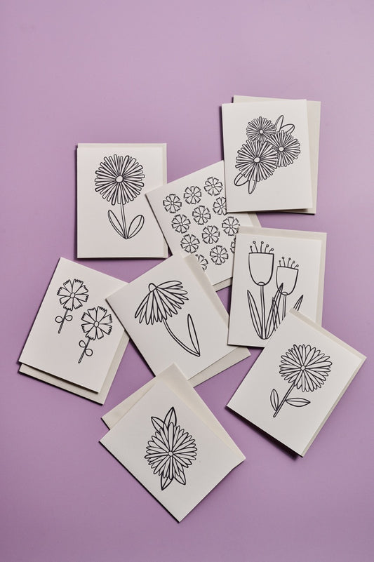 Birthday Coloring Card Boxed Set of 8 - Letterpress Printed