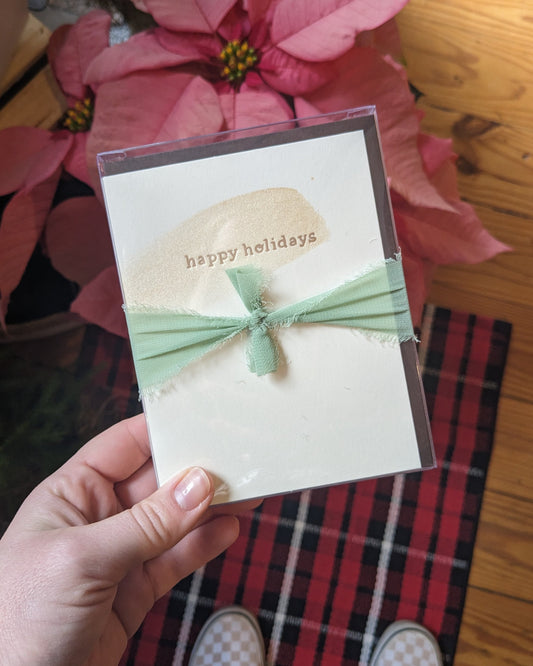 Happy Holidays Hand Painted Letterpress Card - Mixed Metals