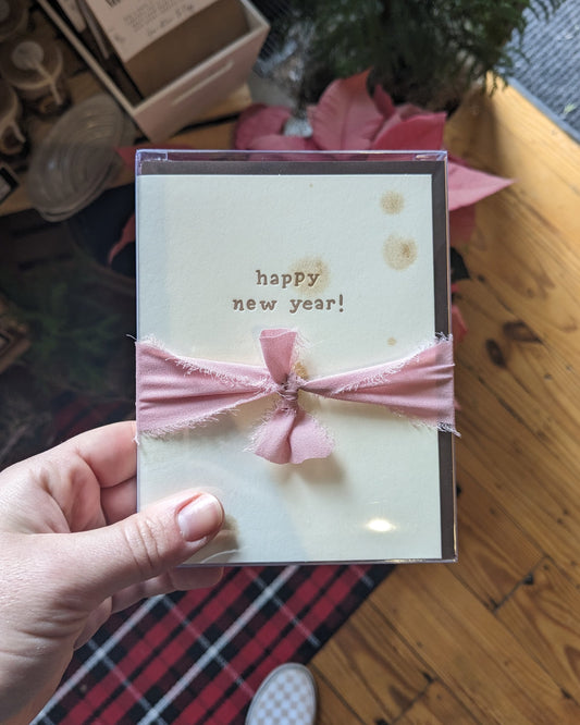 Happy New Year Hand Painted Letterpress Card - Mixed Metals