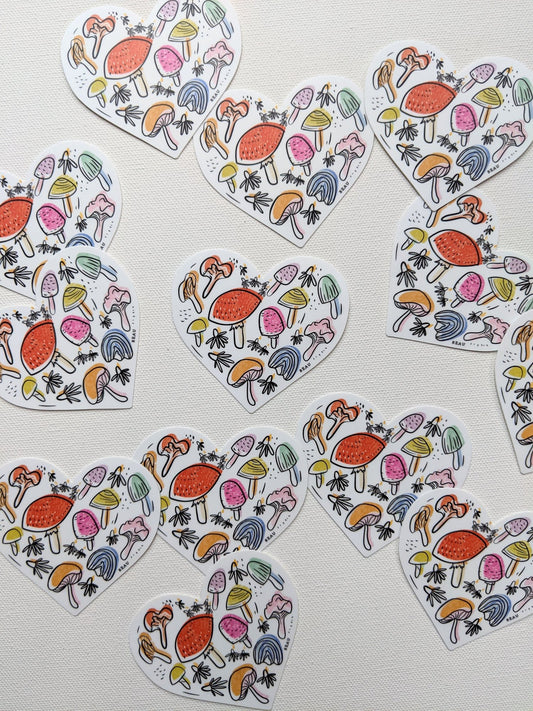 Rainbow Mushroom Heart Sticker