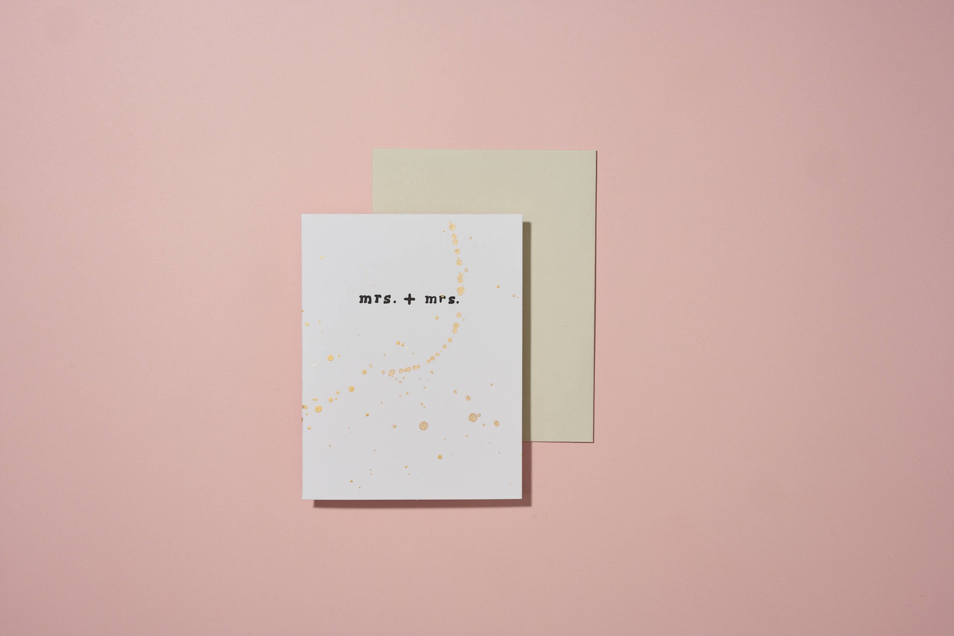 Mrs. + Mrs. Hand Painted Letterpress LGBTQ+ Wedding Card